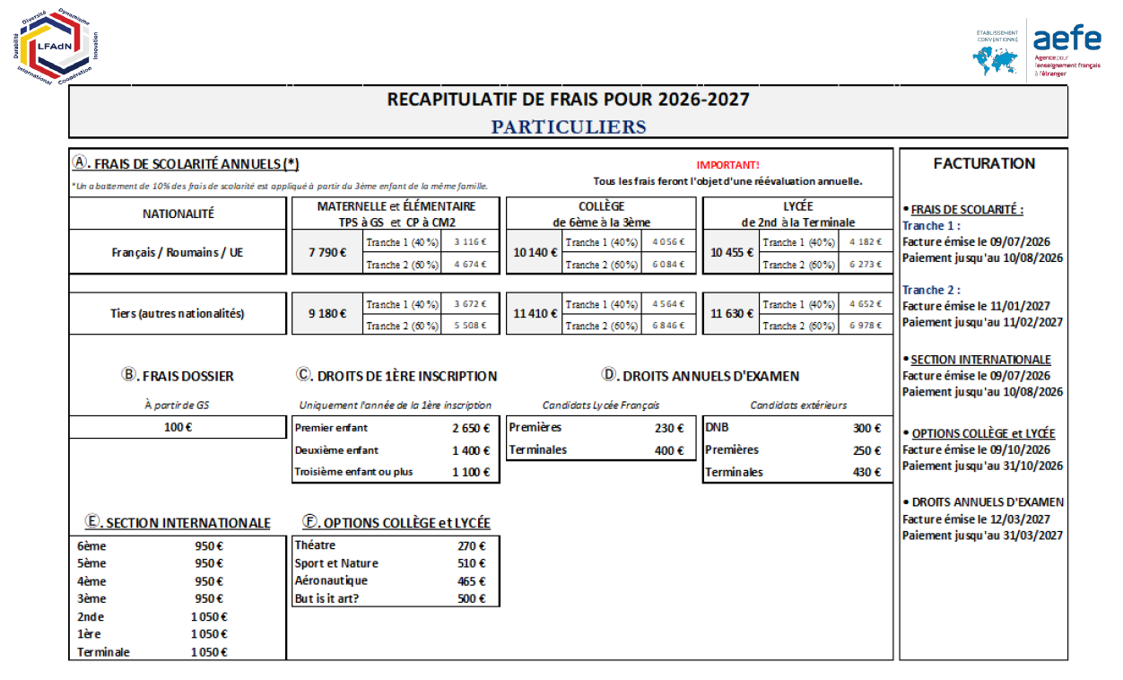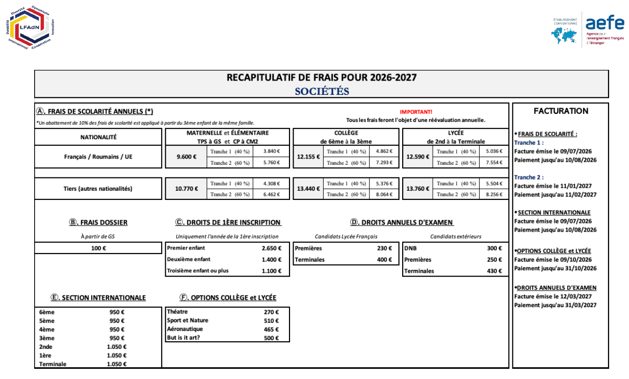 Si vous souhaitez déposer le dossier d’inscription pour l’année scolaire en cours (2025/26), merci de contacter secretariat.accueil@lyceefrancais.ro